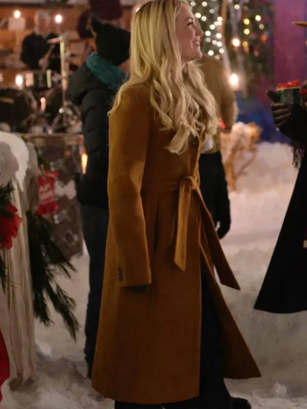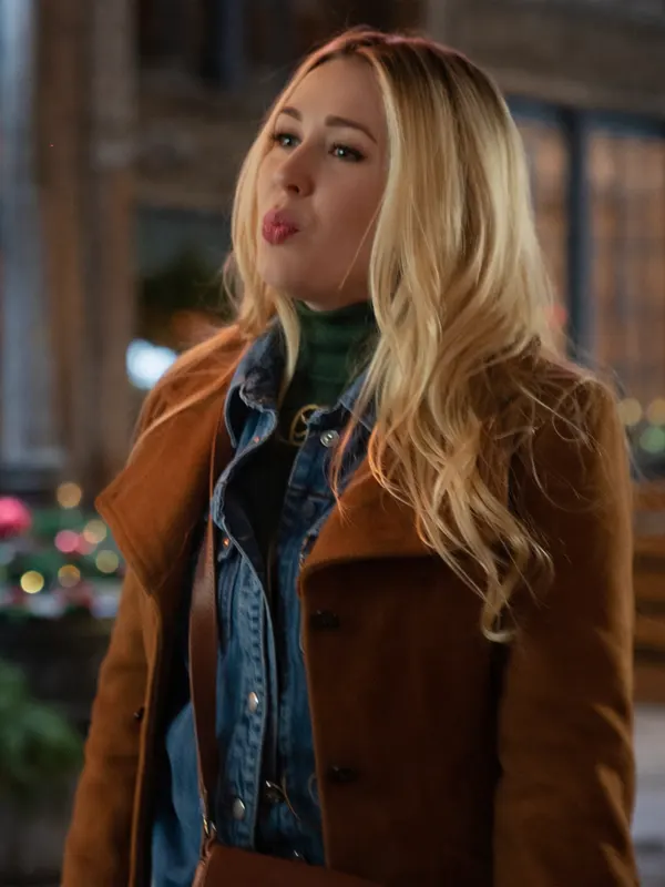 Capture the festive spirit with this elegant brown wool coat, inspired by Natalie Hall in A Wild West Christmas. Featuring a sophisticated lapel collar and a stylish belted waist for a tailored silhouette, this coat combines warmth with timeless grace. It is the perfect outerwear choice for holiday gatherings or adding a touch of class to daily wear.