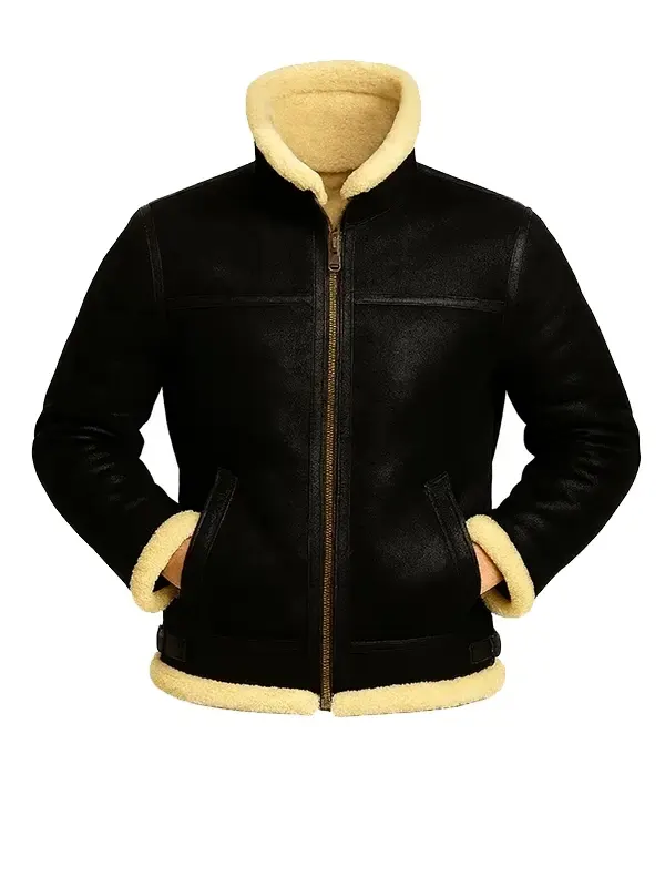 Men’s B3 Bomber Genuine leather Black Shearling Fur Jacket
