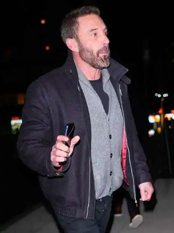 Ben Affleck NYC Black Wool Jacket is made using wool fabric with soft viscose lining, full length sleeves, buttoned cuffs, stand up collar, zipper closure, two outside pockets, and two inside pockets. Worn by Ben Affleck, it suits winter outings, city strolls, casual dinners, and refined everyday street styles.