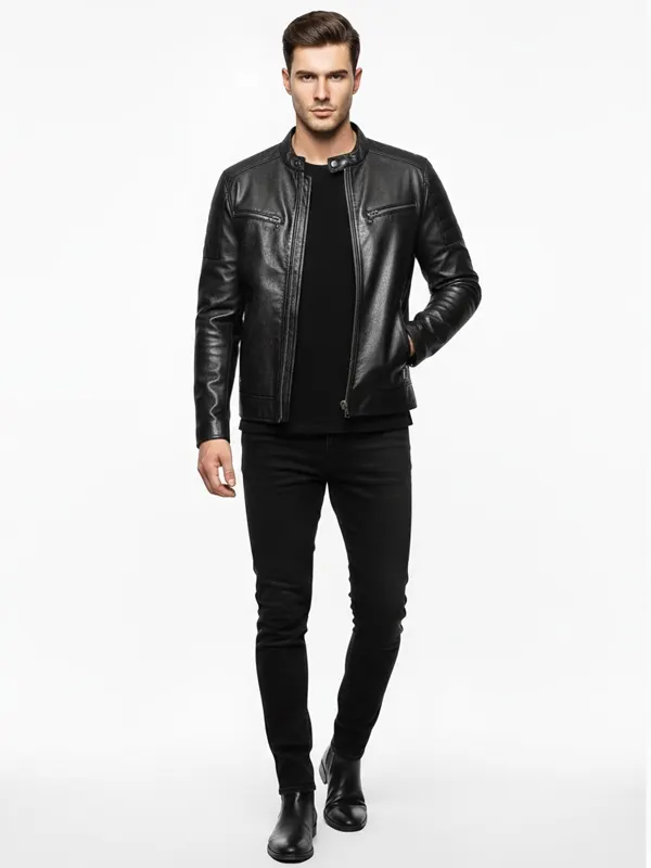 This jacket features sleek leather with a true cafe racer vibe, full sleeves, smooth internal lining, and a fitted silhouette that accentuates modern flair. It brings minimalist design and classic attitude together. It is perfect for casual rides, city nights, streetwear fashion, or anyone wanting a stylish jacket with a bold personality.