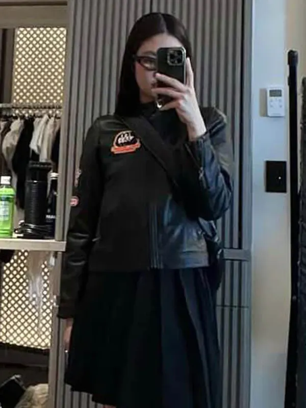 South Korean Singer Blackpink Jisoo Black Leather Jacket