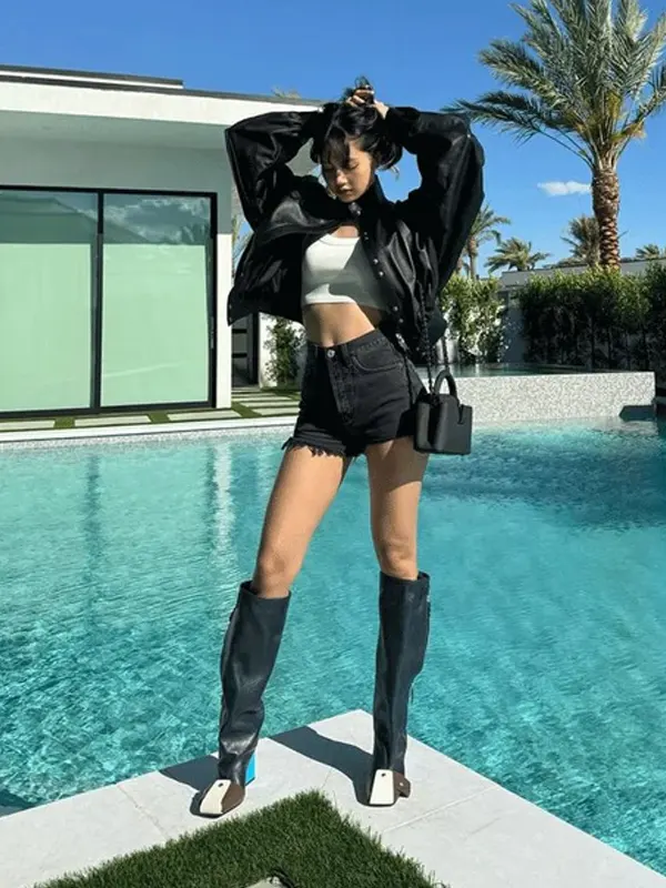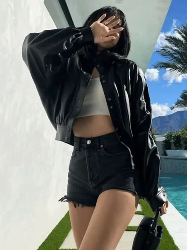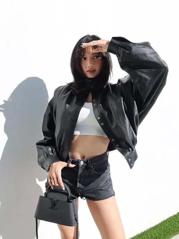 Girl Group Blackpink Lalisa Manoban Black Leather Jacket