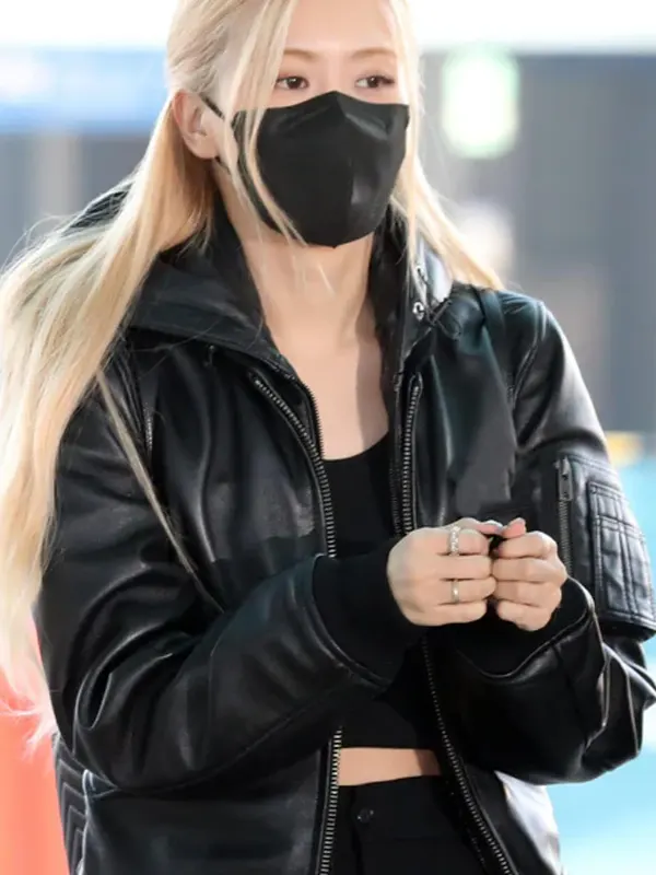 K-pop Fashion Blackpink Rose Bomber Black Leather Jacket