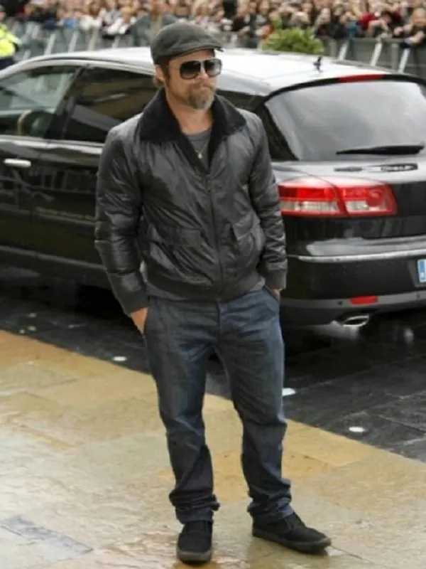 Brad Pitt Black Bomber Leather Jacket