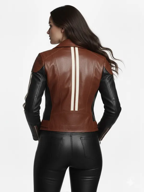 This jacket combines classic biker leather with a two-tone brown and black finish, full sleeves, sturdy closure, and functional pockets. It gives a bold, timeless biker vibe. Perfect for motorbike rides, streetwear, casual outings, or anyone wanting a tough and stylish leather jacket that blends ruggedness with classic style.