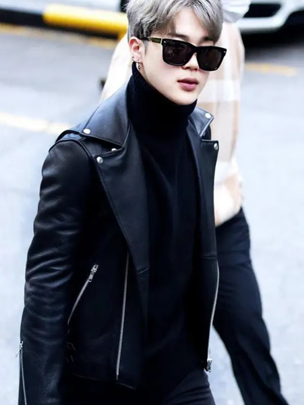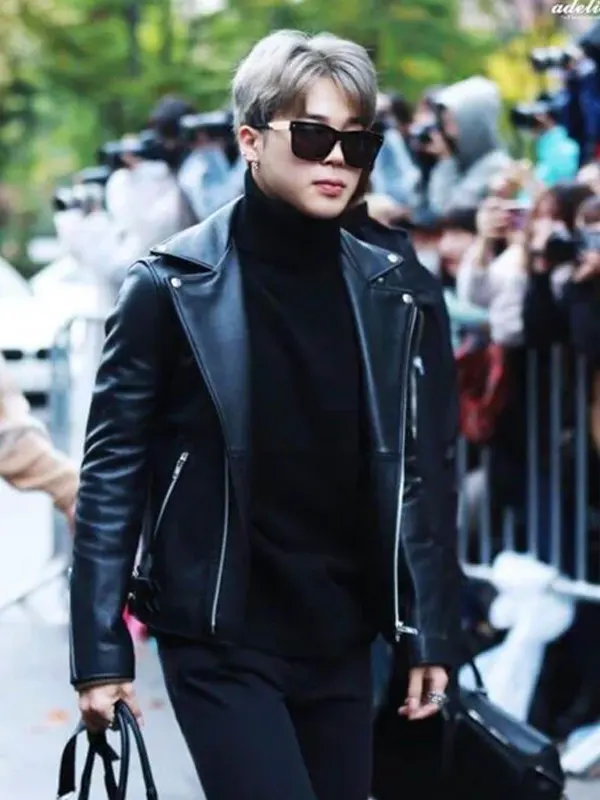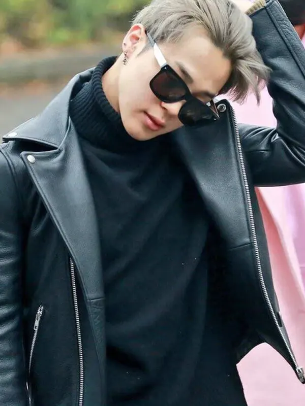 K-pop BTS Jimin Motorcycle Black Leather Jacket