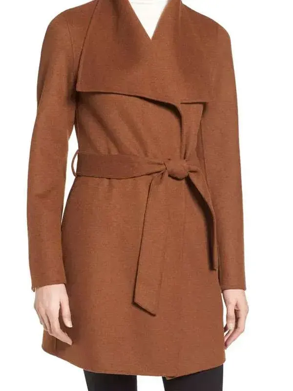This Grace Evans Brown Coat from the Chicago Med series is crafted using wool fabric, soft viscose lining, full length sleeves, open hem cuffs, lapel style collar, belted closure, two outside pockets and two inside pockets, finished in brown. It suits casual winter outings and refined everyday cold weather styling.