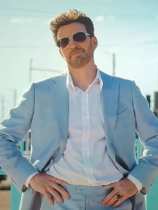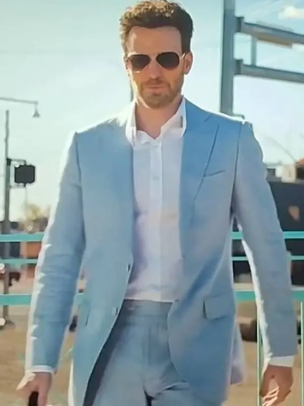 Chris Evans Honey Don’t! 2025 Light Blue Blazer