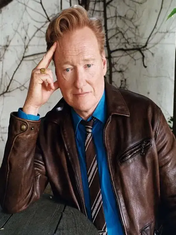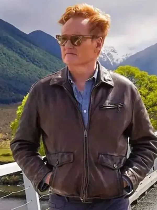 The Brown leather jacket worn by Conan O’Brien in conan O’Brein Must Go blends casual cool with signature humor. Designed in supple leather, it features a clean zip front, structural fit, and understated details, reflecting Conan’s witty personality and effortless, on-the-go style.