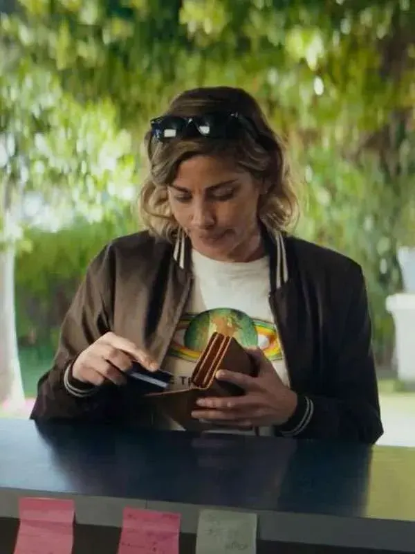 The Dear Life Lillian Vandenberg Brown Bomber Jacket is made using polyester fabric with soft viscose lining, full length sleeves, ribbed cuffs, and a rib knit collar. It features a zipper closure, two outside pockets, two inside pockets, and a brown color, making it perfect for daily wear and casual outings.