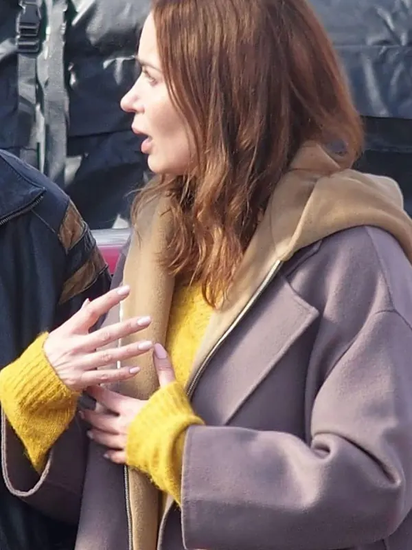 Movie Disclosure Day 2026 Emily Blunt Grey Wool Long Coat