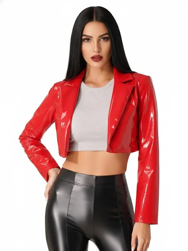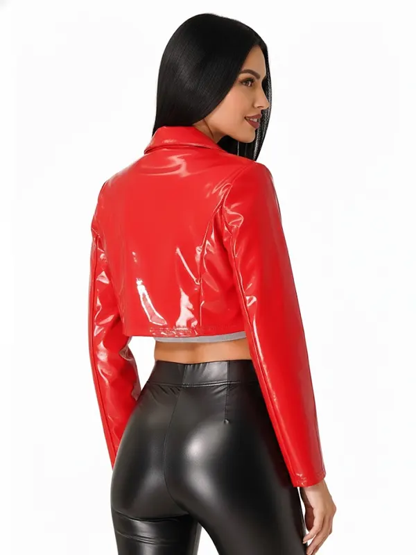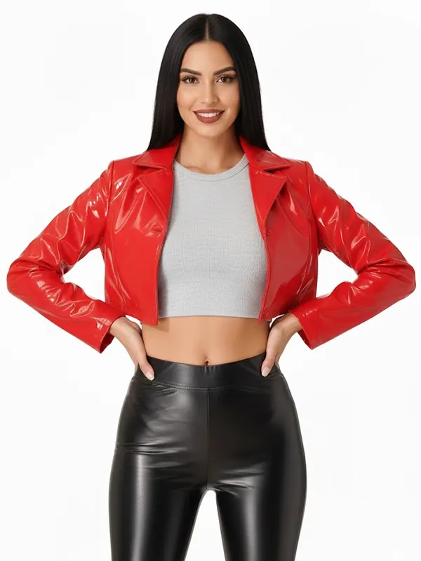 This jacket features cropped red leather with moto biker styling, smooth lining, fitted silhouette, and a bold presence. Its design enhances modern outfits with fierce energy. It is perfect for city nights, streetwear fashion, casual rides, and anyone wanting a standout leather jacket that blends edgy biker attitude with contemporary flair.