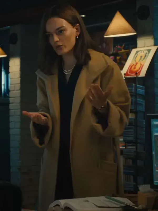 Ella McCay Movie Ella McCay 2025 Emma Mackey Brown Wool Long Coat