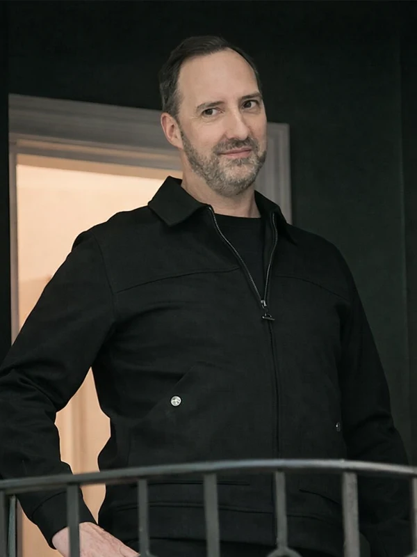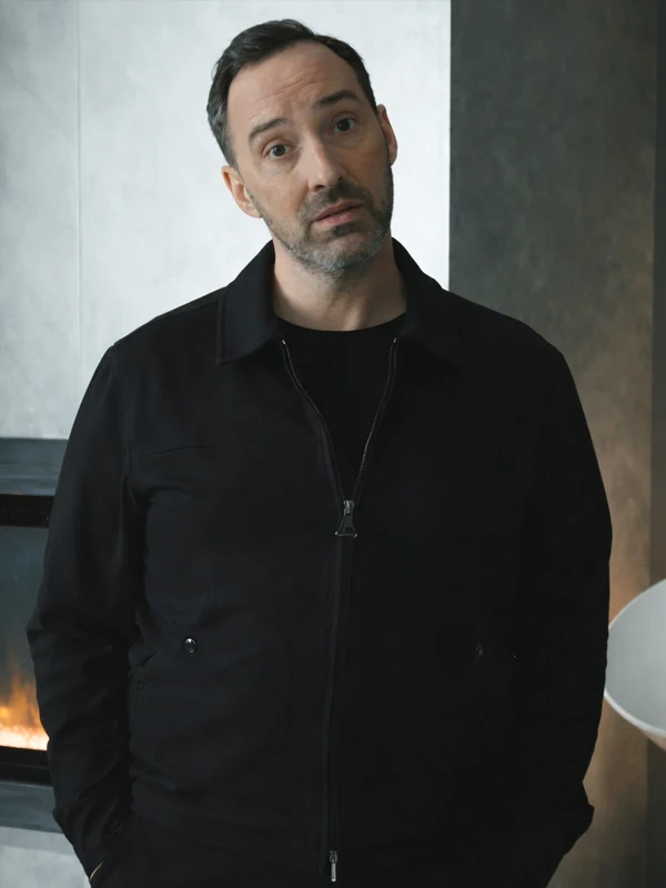 Upgrade your casual wardrobe with this elegant black jacket, inspired by Tony Hale’s character in Elsbeth Season 3. Meticulously crafted from high-quality cotton fabric, it features a classic shirt-style collar and a clean front zipper closure. This versatile piece provides a refined yet relaxed silhouette, perfect for layering in any season.