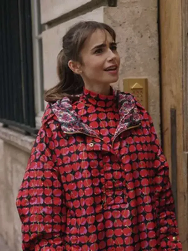 Emily Cooper TV Series Emily in Paris Lily Collins Red Cherries Jacket