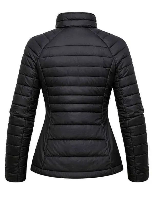 This Rue Bennett Black Puffer Jacket from the Euphoria series is crafted using parachute fabric with soft viscose lining, full length sleeves, rounded cuffs, stand up collar, and zipper closure, featuring two outside pockets and two inside pockets. It is perfect for casual outings, winter wear, and everyday relaxed street fashion.