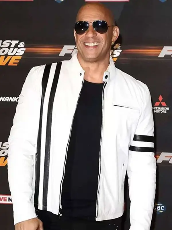 Fast And Furious Live Premiere Vin Diesel White Leather Biker Jacket