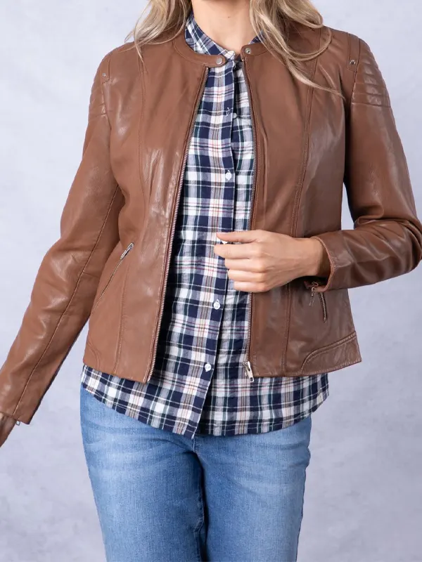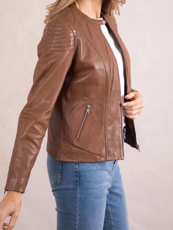 Heron Slim Fit Womens Tan Leather Jacket