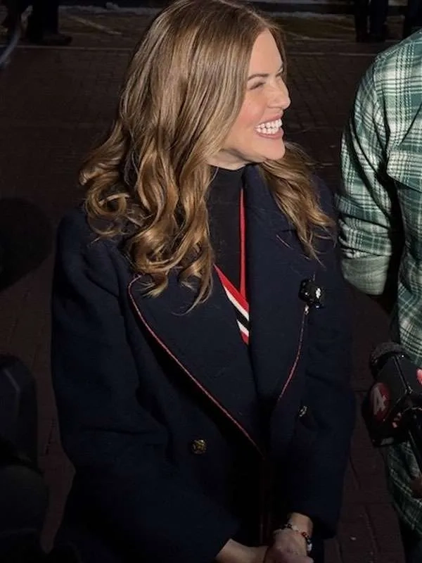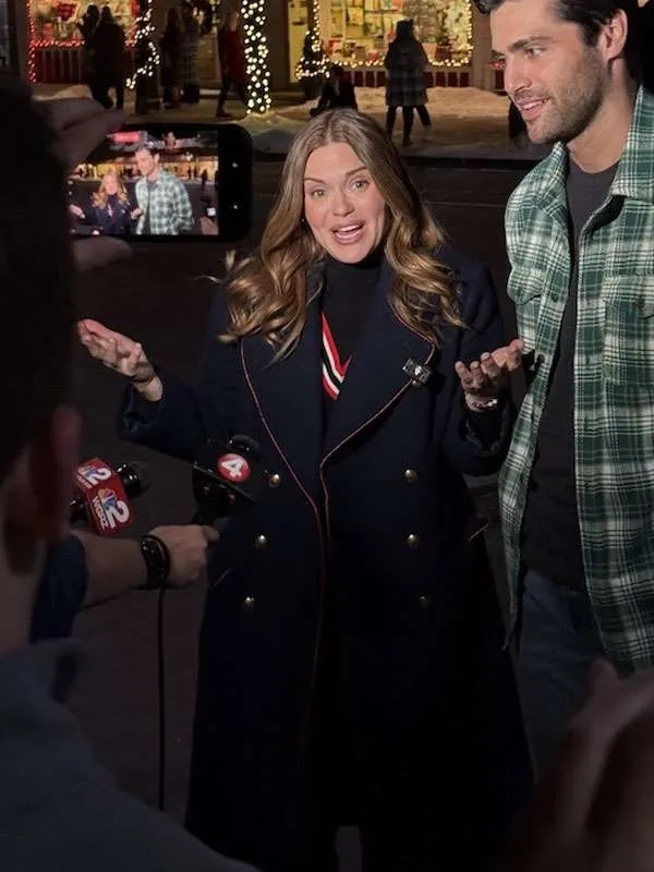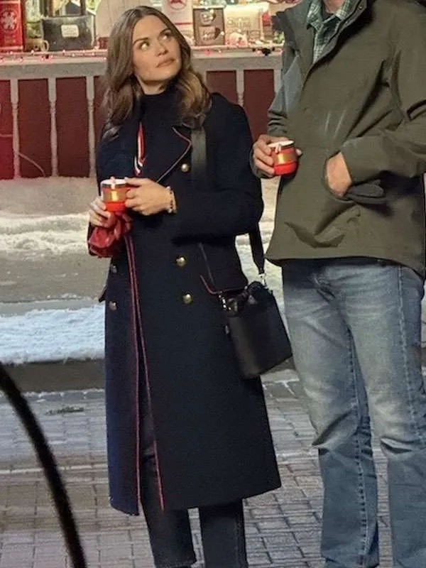 Holland Roden Movie Holiday Touchdown A Bills Love Story 2025 Morgan Quinn Blue Long Coat