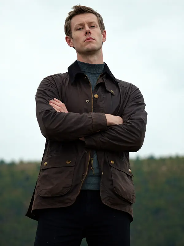 The Andrew Olive Jacket from the How To Get To Heaven From Belfast series is made using cotton fabric, soft viscose lining, full length sleeves, shirt style collar, and zipper and button closure, featuring four outside pockets and two inside pockets. It suits practical outdoor outfits and casual everyday fashion.