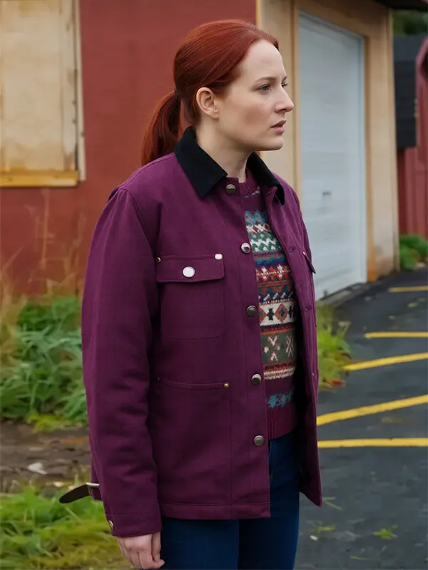 Styled by Bryanna Francis in the Hudson And Rex series, this purple jacket is built using cotton fabric, soft viscose lining, full length sleeves, buttoned cuff, shirt style collar, and button closure, featuring four outside pockets and one inside pocket. It suits casual fashion and everyday outfits.