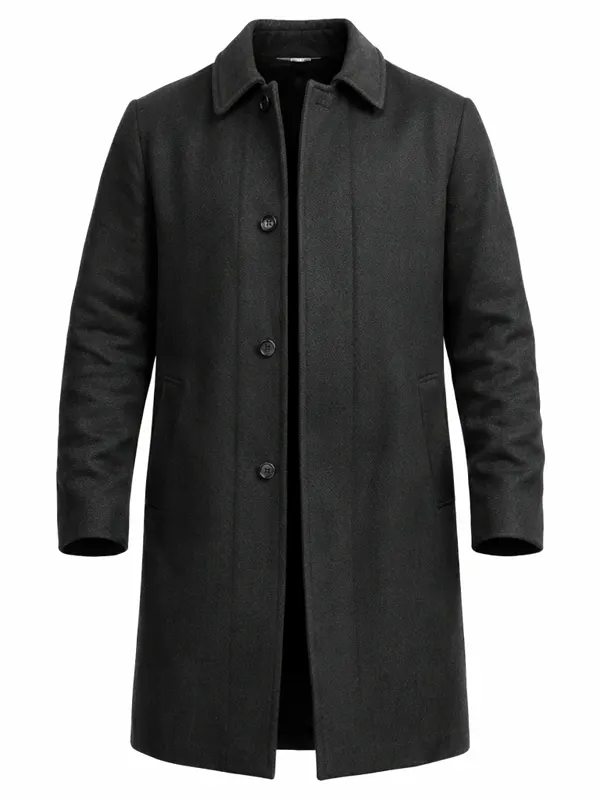 This Mark Hudson Grey Coat from the Hudson And Rex series is crafted using wool fabric, soft viscose lining, full length sleeves, buttoned cuffs, shirt style collar, and button closure, featuring two outside pockets and two inside pockets. It suits classic winter fashion and elegant everyday outfits.