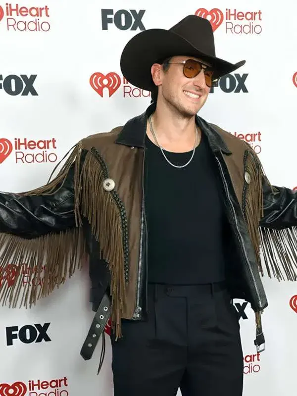 This Russell Dickerson Black Jacket from iHeartRadio Music Awards is tailored using genuine leather, soft viscose lining, full length sleeves, zipper cuffs, shirt style collar, and zipper closure, featuring two outside pockets and two inside pockets. It suits bold looks and modern celebrity inspired fashion.