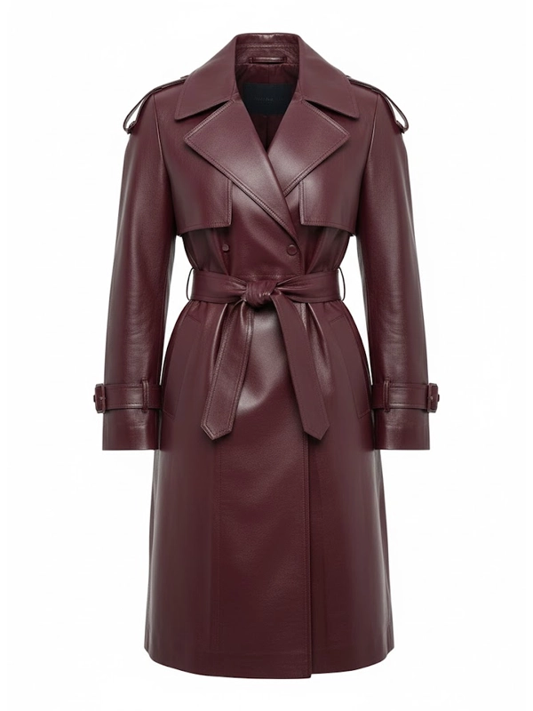 Movie A Merry Little Ex-Mas Jameela Jamil Maroon Leather Long Coat