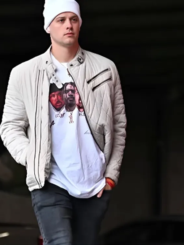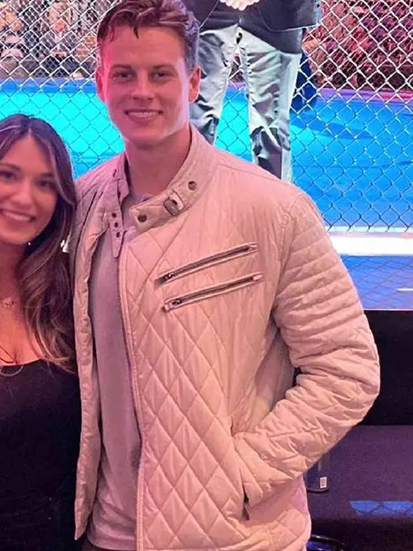 Joe Burrow Stylish Erect Collar Quilted White Jacket