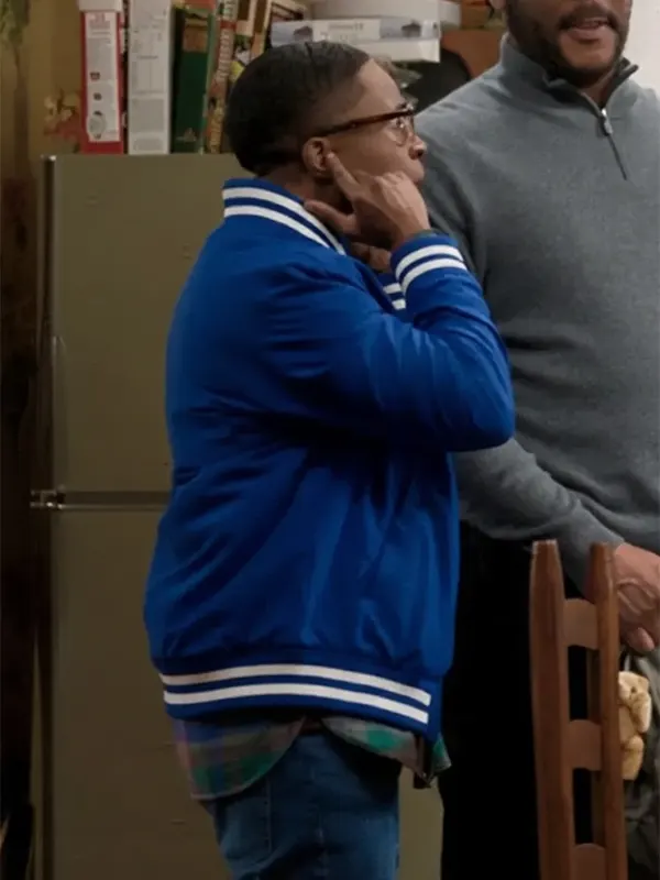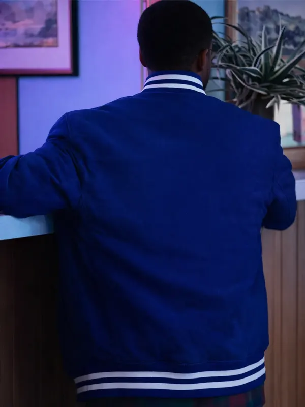 This Jermaine Harris Blue Jacket from the Tyler Perry’s Joe’s College Road Trip movie is crafted using wool fabric with soft viscose lining, full length sleeves, ribbed cuffs, rib knit collar, and zipper closure, featuring two outside pockets and two inside pockets. It is perfect for casual days, travel plans, college trips, and comfortable everyday street wear.