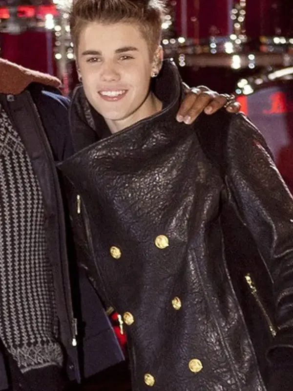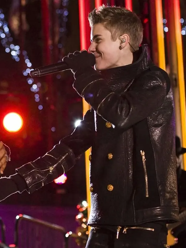 Canadian singer Justin Bieber’s Christmas Concert Double Breasted Black Leather Jacket