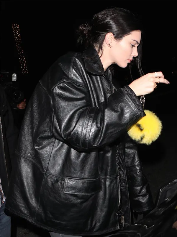 Kendall Jenner Plus Size Black Leather Winter Coat
