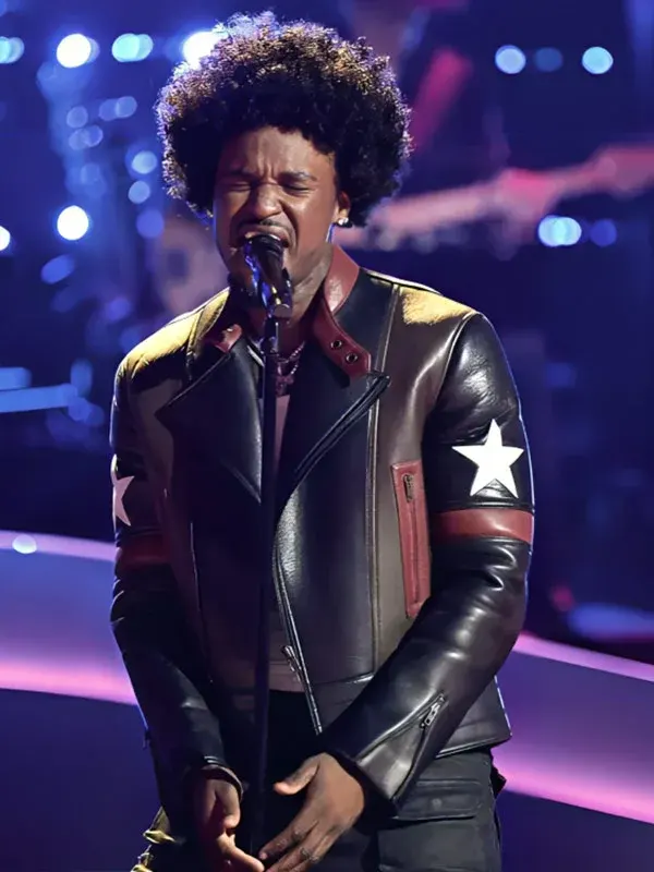 TV Series The Voice S28 Singer Kenny Iko Star Sleeves Leather Jacket
