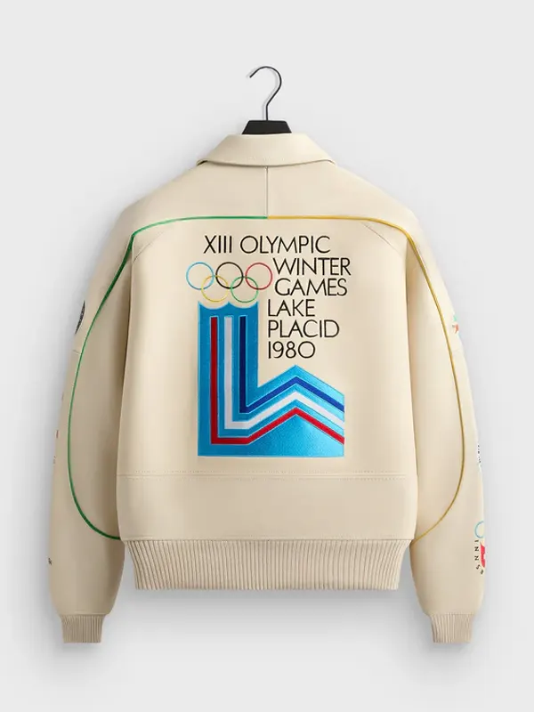 The Kith Avirex Olympics Heritage Leather Jacket is crafted using genuine leather with soft viscose lining, full length sleeves, ribbed cuffs, shirt style collar, and zipper closure, featuring two outside pockets and two inside pockets. It is perfect for casual outings, heritage inspired fashion, and everyday statement wear.