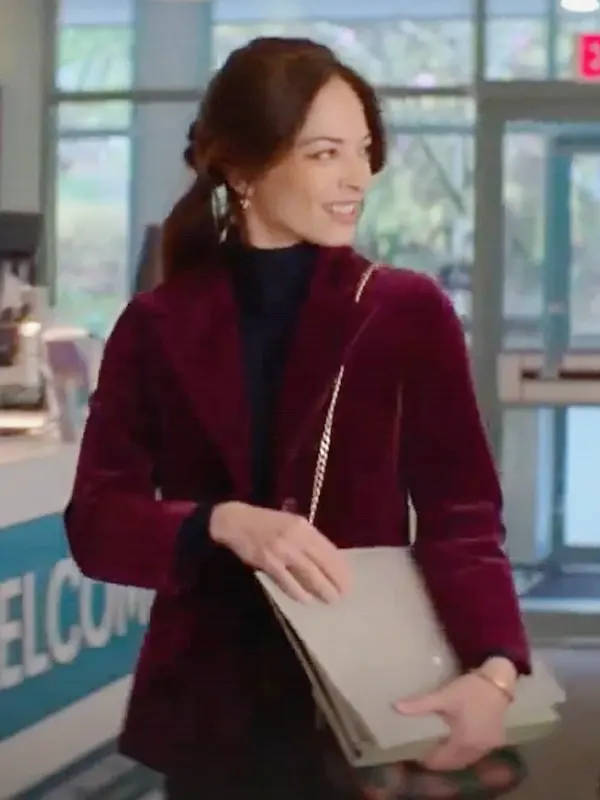 Cassandra Lee TV-Series Murder in a Small Town 2025 Kristin Kreuk Maroon Velvet Blazer