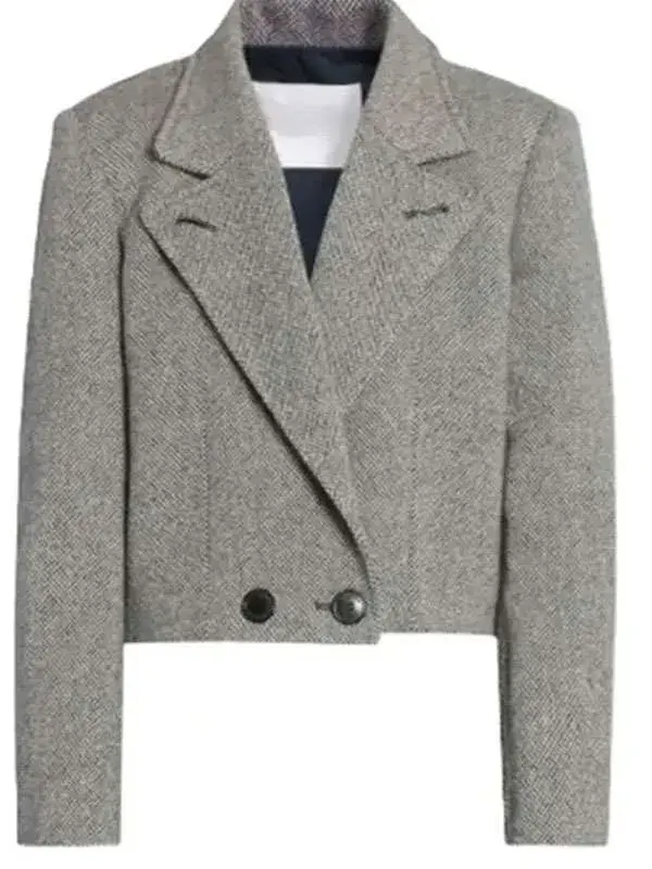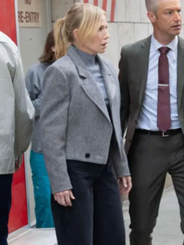 Kelli Giddish TV Series Law & Order Special Victims Unit Detective Amanda Rollins Grey Cropped Wool Blazer