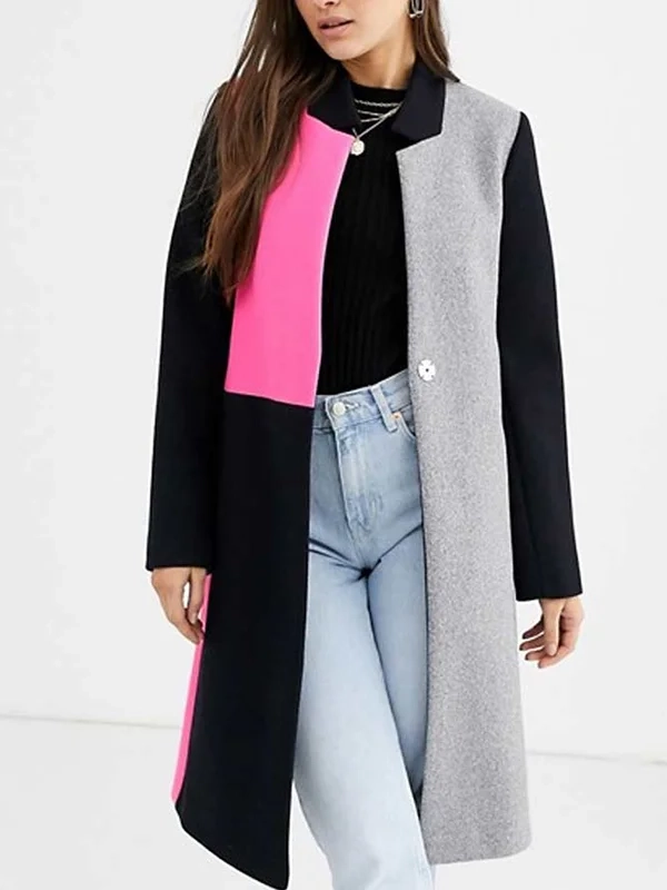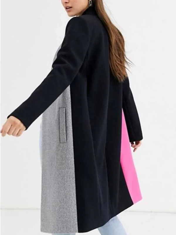 Emily Cooper TV Series Emily In Paris Lily Collins Multi Color Block Long Wool Coat