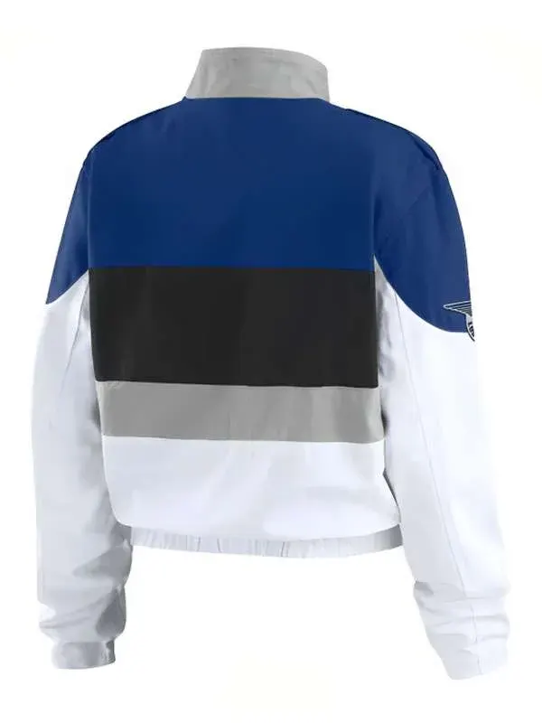 Los Angeles Dodgers Racer Jacket is crafted using cotton fabric with soft viscose lining, full length sleeves, open hem cuffs, stand up collar, and zipper closure, featuring two outside pockets and one inside pocket. It is perfect for casual wear, bike rides, daily outings, and light travel.