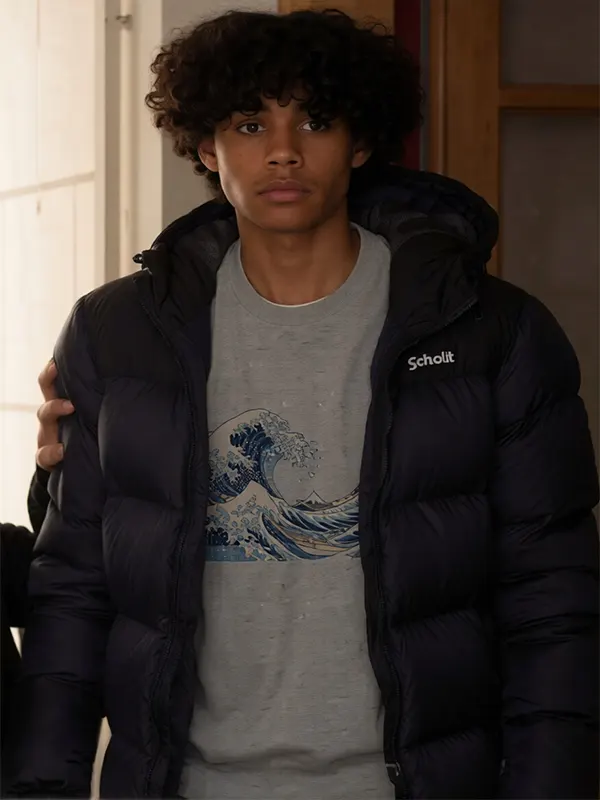 Etan Simon Black Puffer Jacket from the Lupin series is crafted using parachute fabric, soft viscose lining, full length sleeves, elasticated cuffs, hooded style collar, and zipper closure, completed by two outside pockets and one inside pocket. It suits cold weather fashion and relaxed street style wear.