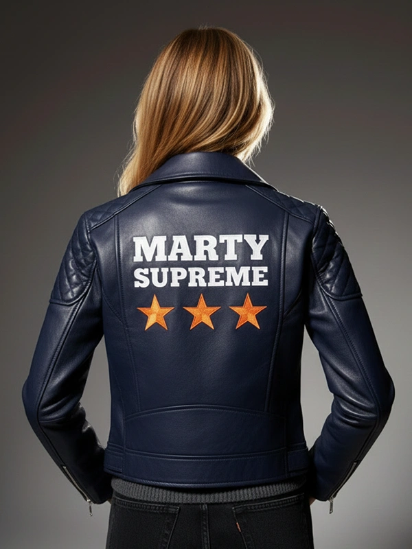 Marty Supreme Biker Style Navy Blue Leather Jacket