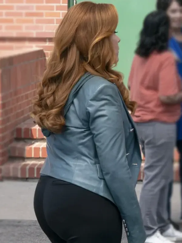 Lisa Ann Walter Abbott Elementary TV Series Melissa Schemmenti Blue Genuine Leather Blazer