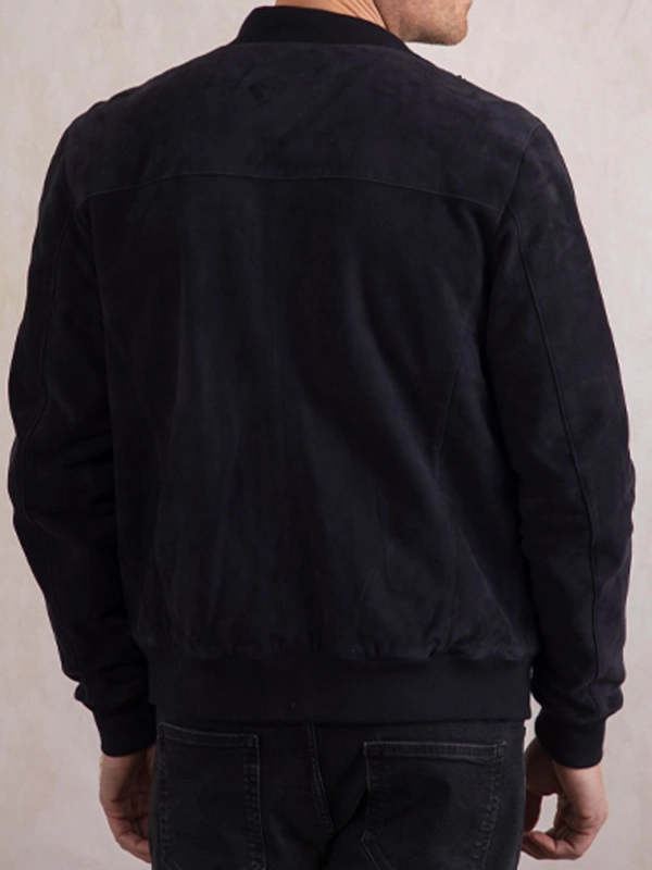 Mens Dalston Navy Suede Bomber Jacket