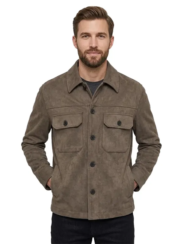 Designed especially for Men, this Khaki Suede Jacket features Suede Leather, Soft Viscose Lining, Full Length Sleeves, Buttoned Cuff, Shirt Style Collar, Button Closure, Four Outside Pocket, Two Inside Pocket, Khaki Color, making it a stylish choice for casual outings, smart dressing, and modern fashion with a soft and premium finish.