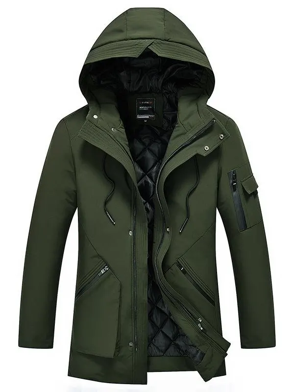 Men’s Stylish Hooded Olive Green Polyester Jacket