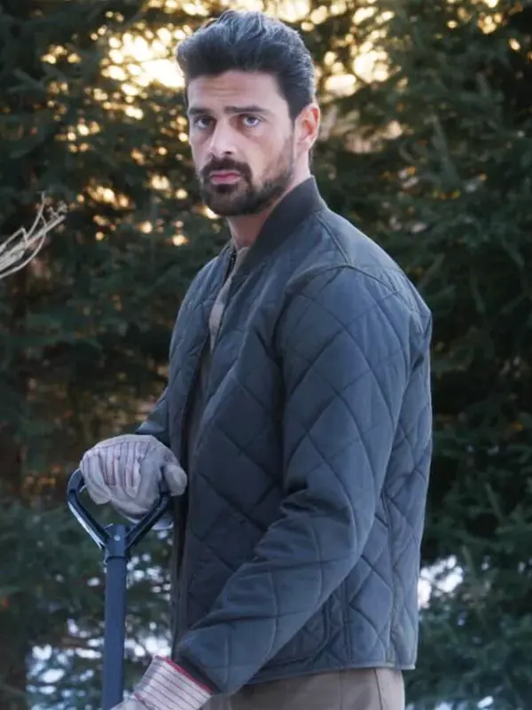 Enzo Movie The Housemaid 2025 Michele Morrone Blue Quilted Bomber Jacket
