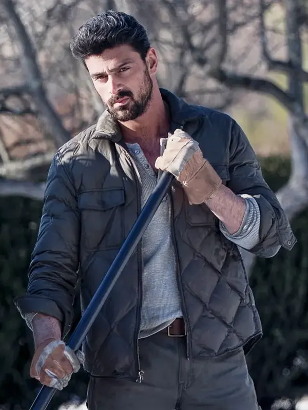 Enzo Movie The Housemaid 2025 Michele Morrone Blue Quilted Polyester Jacket