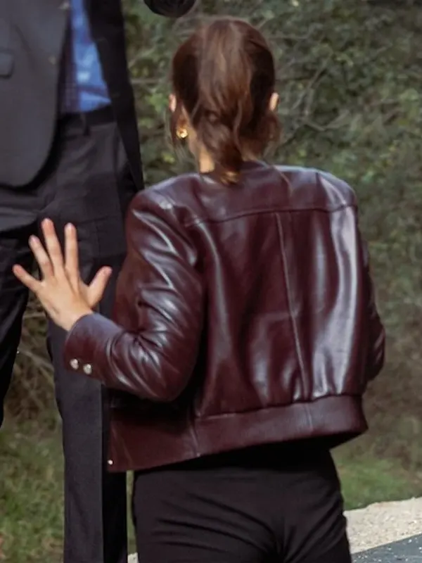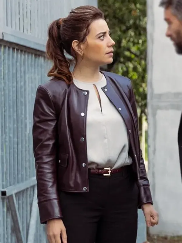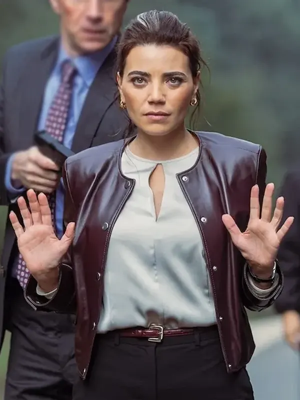 Martine Aranow TV-Series NCIS Tony and Ziva 2025 Nassima Benchicou Maroon Leather Jacket
