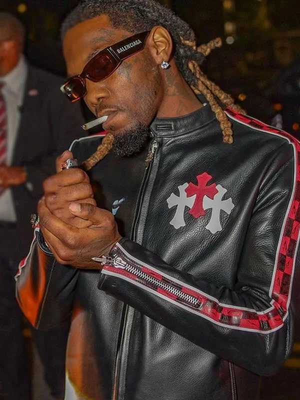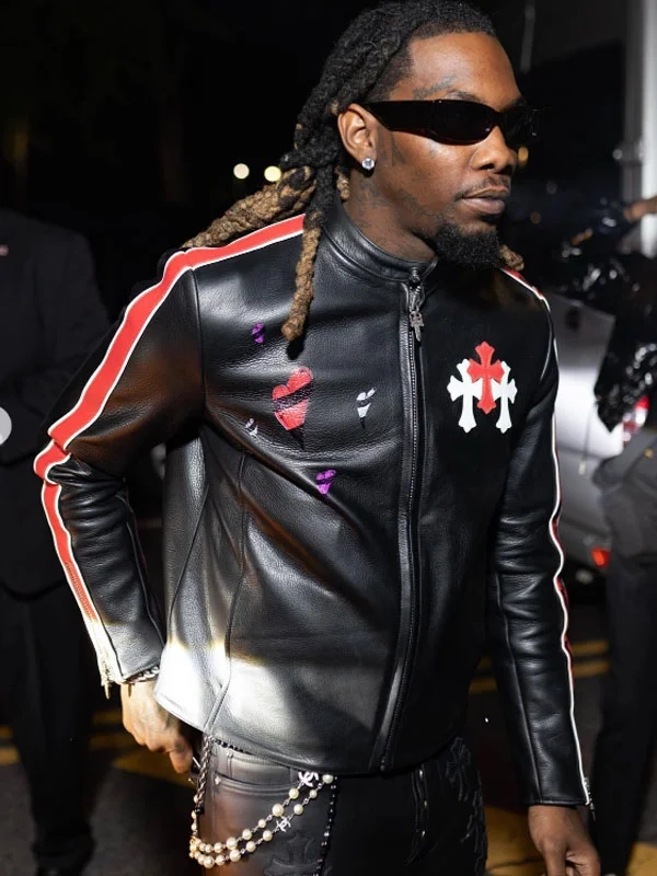 American Rapper Offset Met Gala 2023 Black Leather Jacket