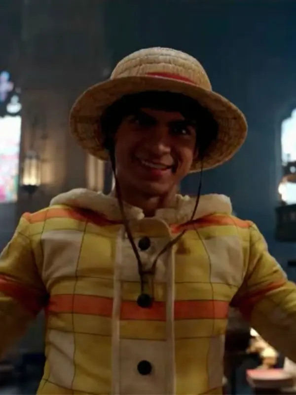 This Monkey D Luffy Plaid Jacket from the One Piece series is crafted using wool fabric with warm shearling lining, full length sleeves, open hem cuffs, hooded collar with strings, and button front closure, including one inside pocket. It provides a rugged layered look and suits casual wear, cool weather days, and outdoor plans.