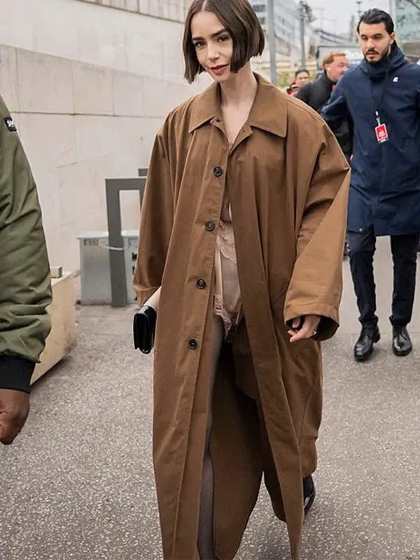 Orient Express Lily Collins Brown Cotton Long Coat